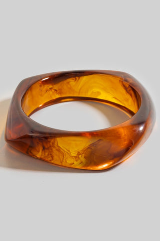 Stack of wooden and beaded bracelets with gold accents on a gray background