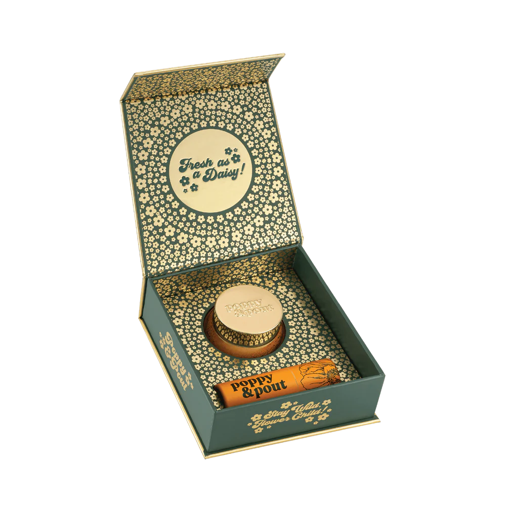 Step up your lip care routine with our Lip Care Duo! This gift set includes one matching lip balm and lip scrub in our signature (newly updated!) green and gold, recyclable gift box.