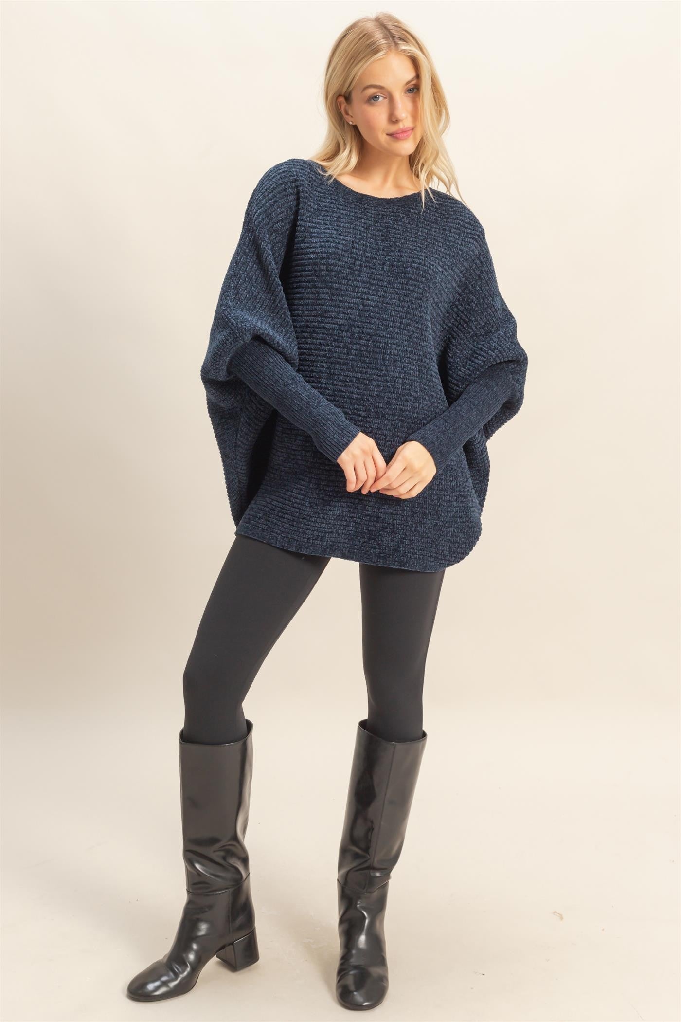 DescriptionExperience the coziness and unique style of this chenille boat neck pullover featuring dolman sleeves. The relaxed fit flatters all silhouettes while providing ample comfort. Pair it with slim jeans for a balanced look or throw it over a midi skirt for an effortlessly stylish ensemble. Model is wearing a small. Has an oversized fit.