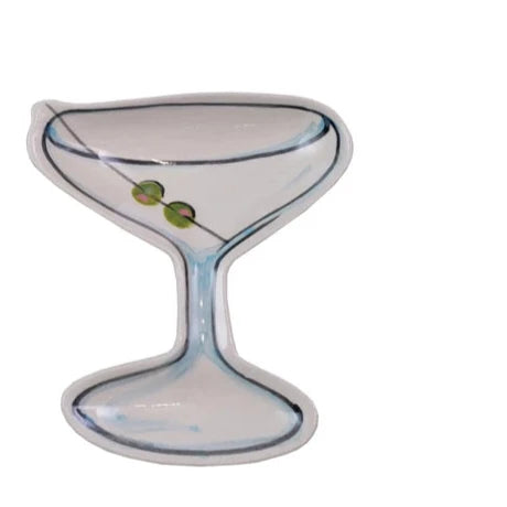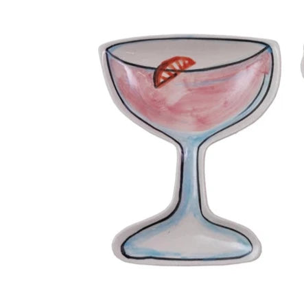 Approximately 5-1/2"L x 4"W Hand-Painted Stoneware Cocktail Shaped Dish, Multi Color, 2 Styles. (each sold individually)