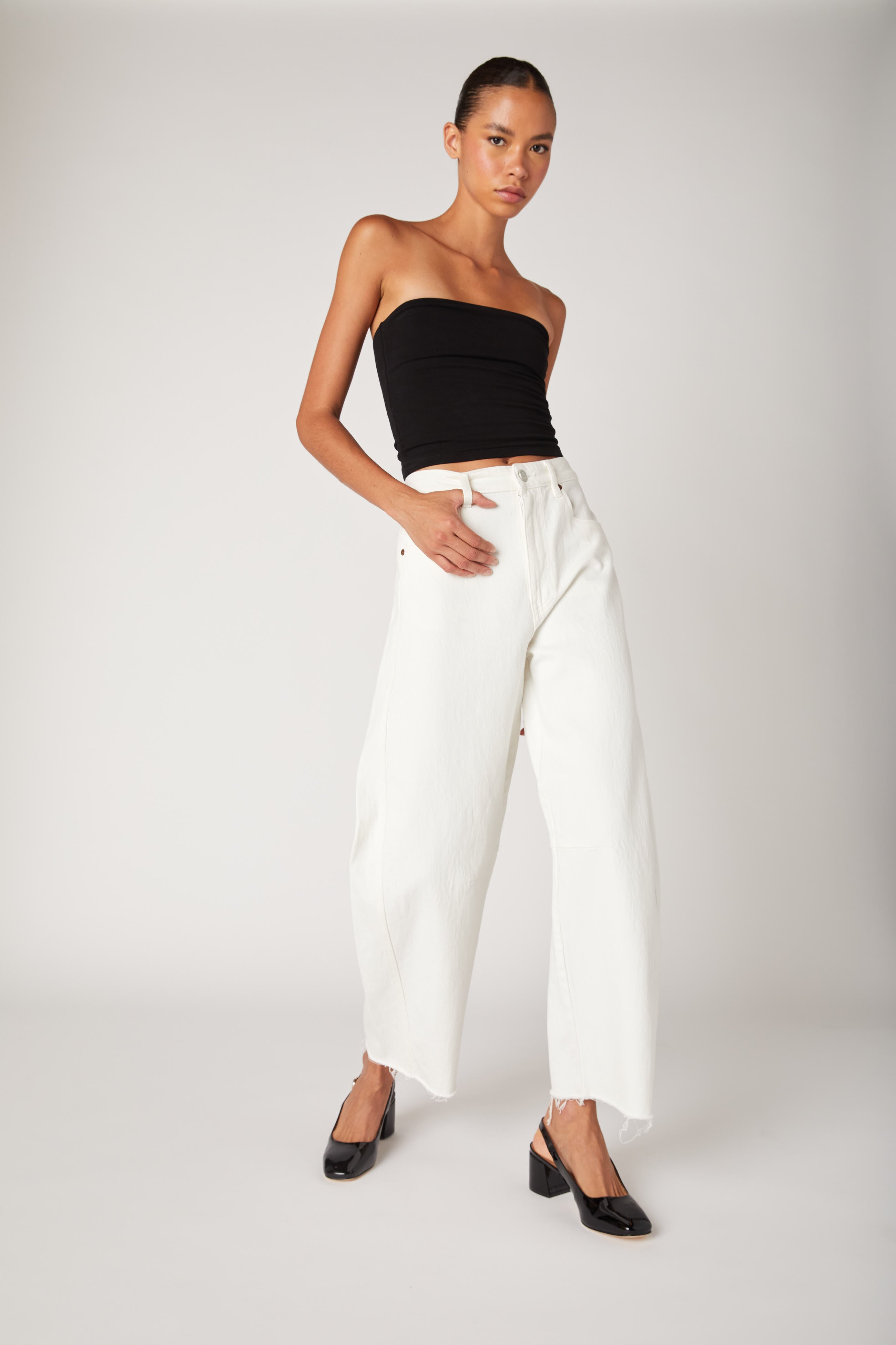 The Barrel Leg White Denim Pant by BlankNYC.