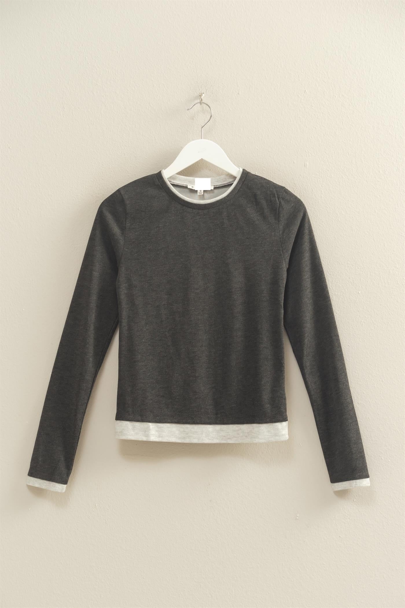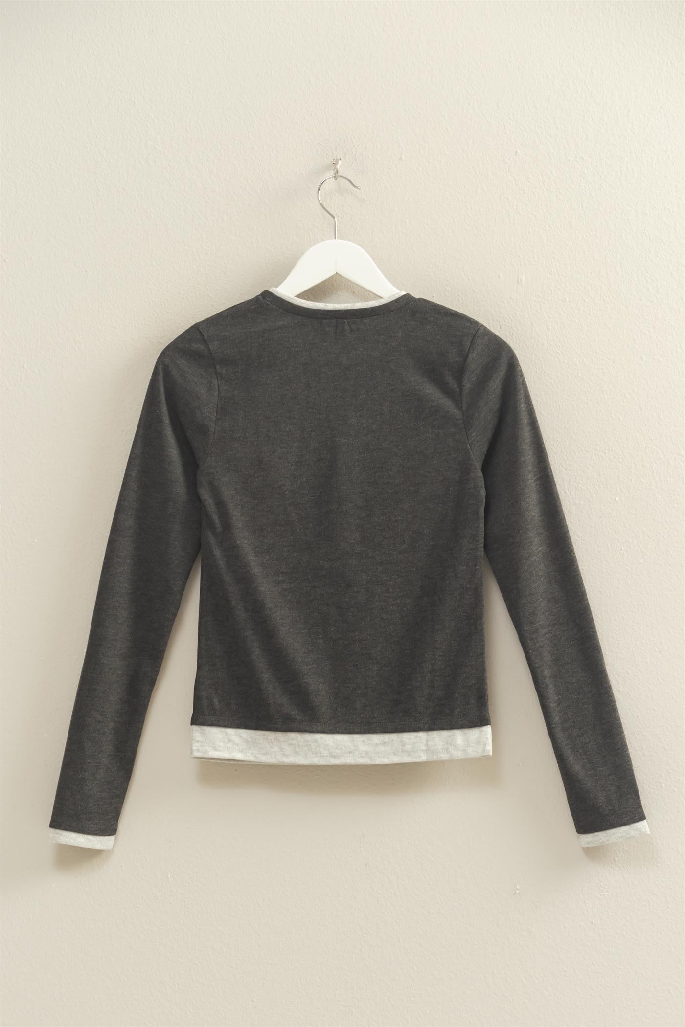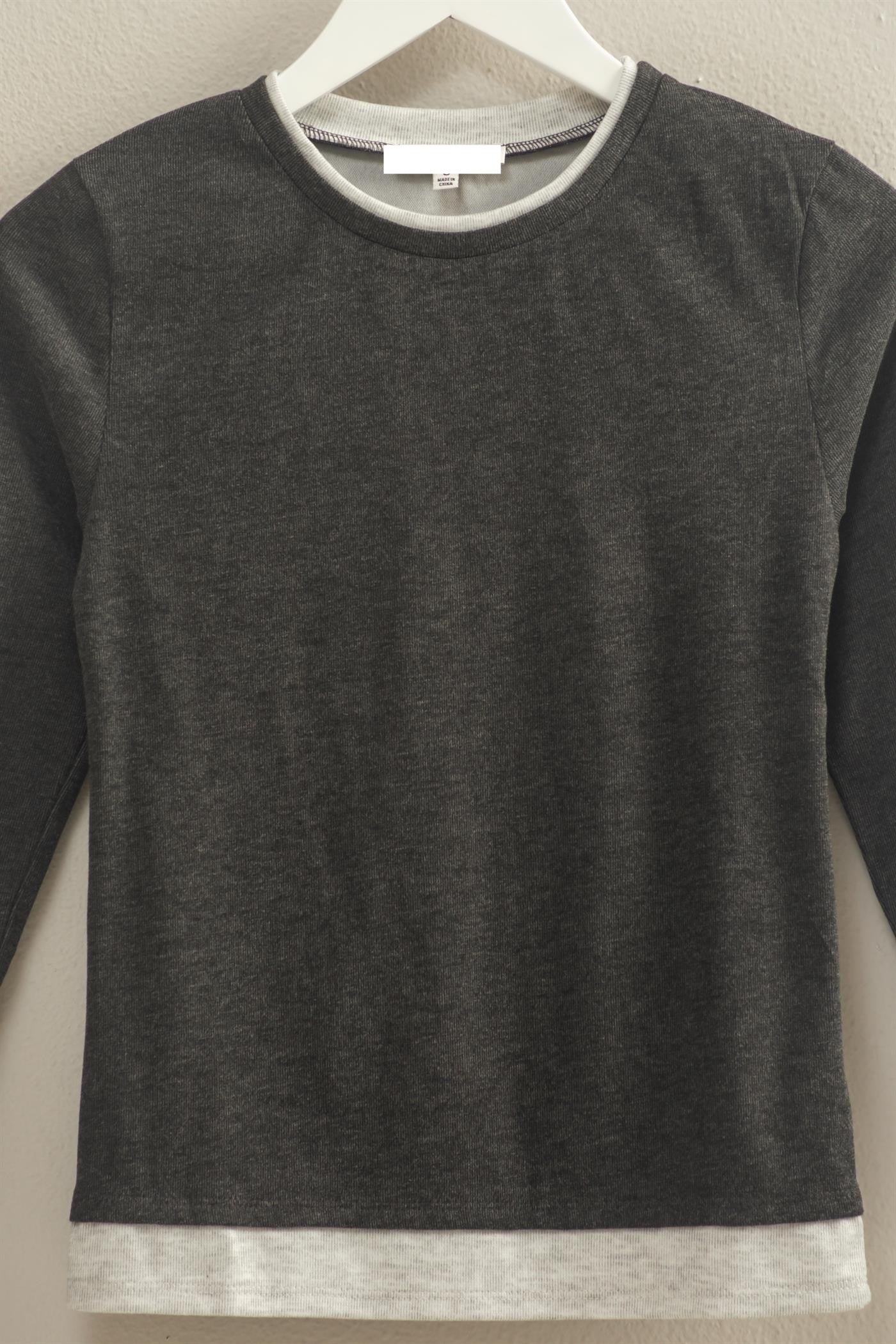 TWO TONE GREY LONG SLEEVE TOP